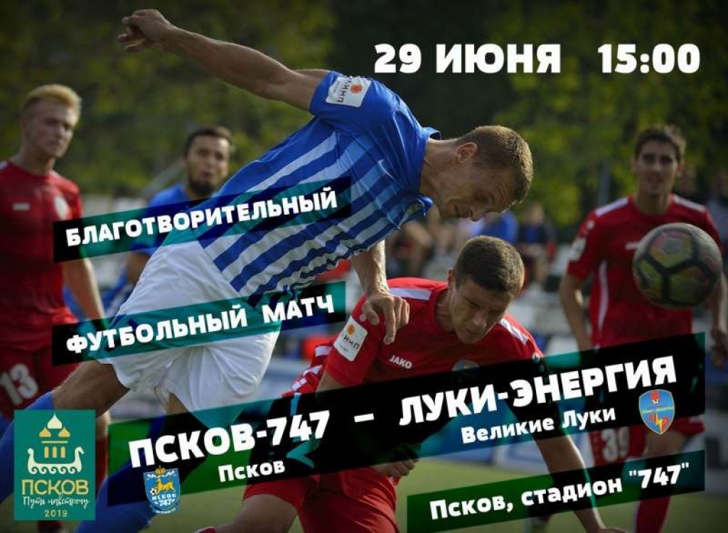 Благотворительный футбольный матч между командами «Псков-747» (Псков) и «Луки-Энергия» (Великие Луки) состоится в субботу, 29 июня, на стадионе «747». Игра приурочена к 39-ым Международным Ганзейским дням Нового времени.